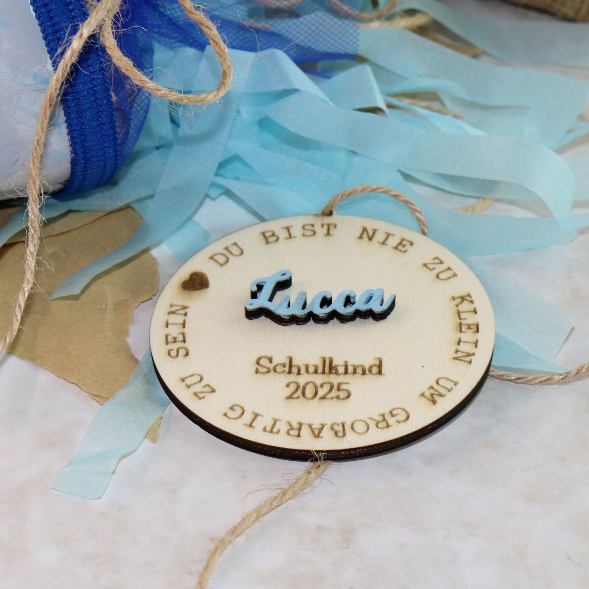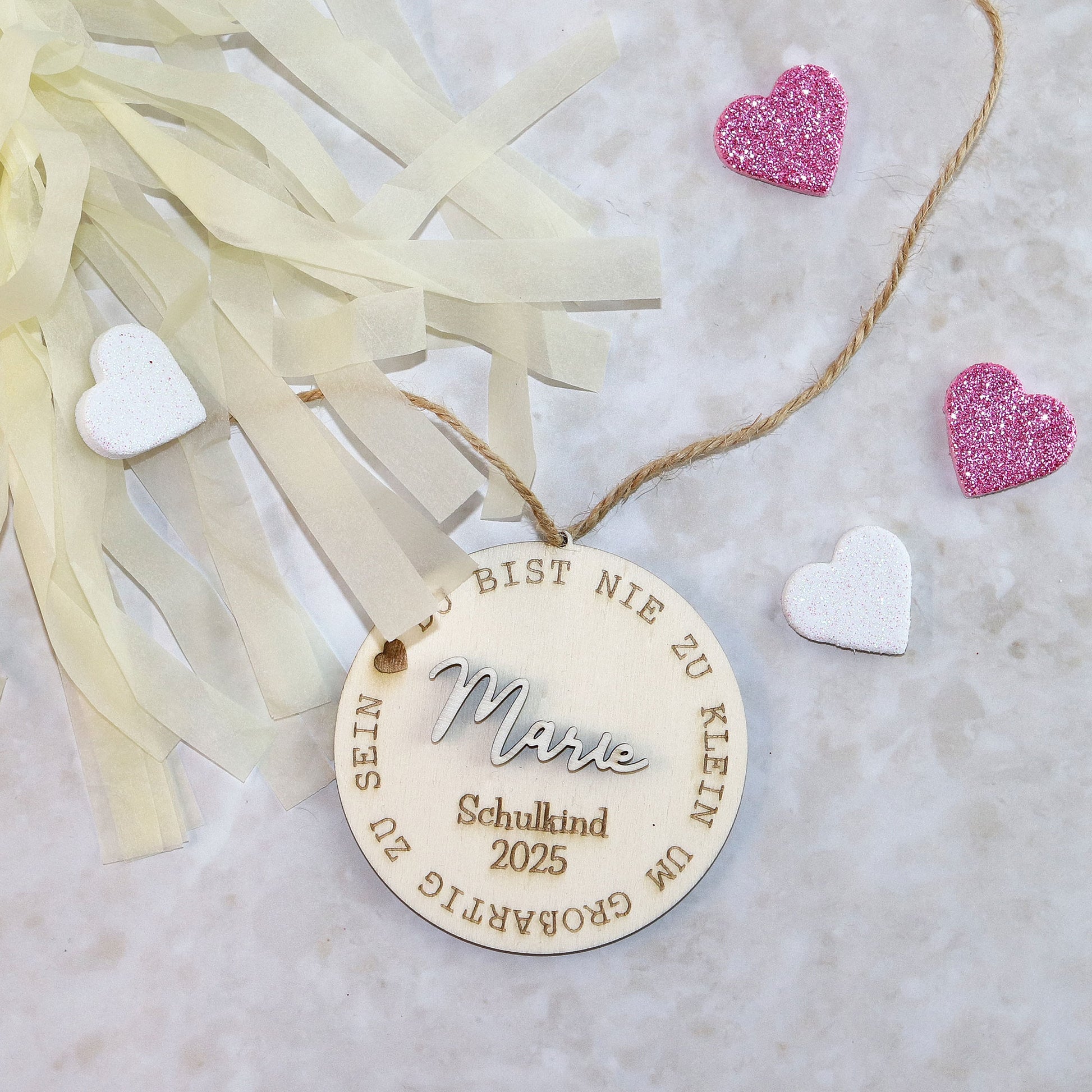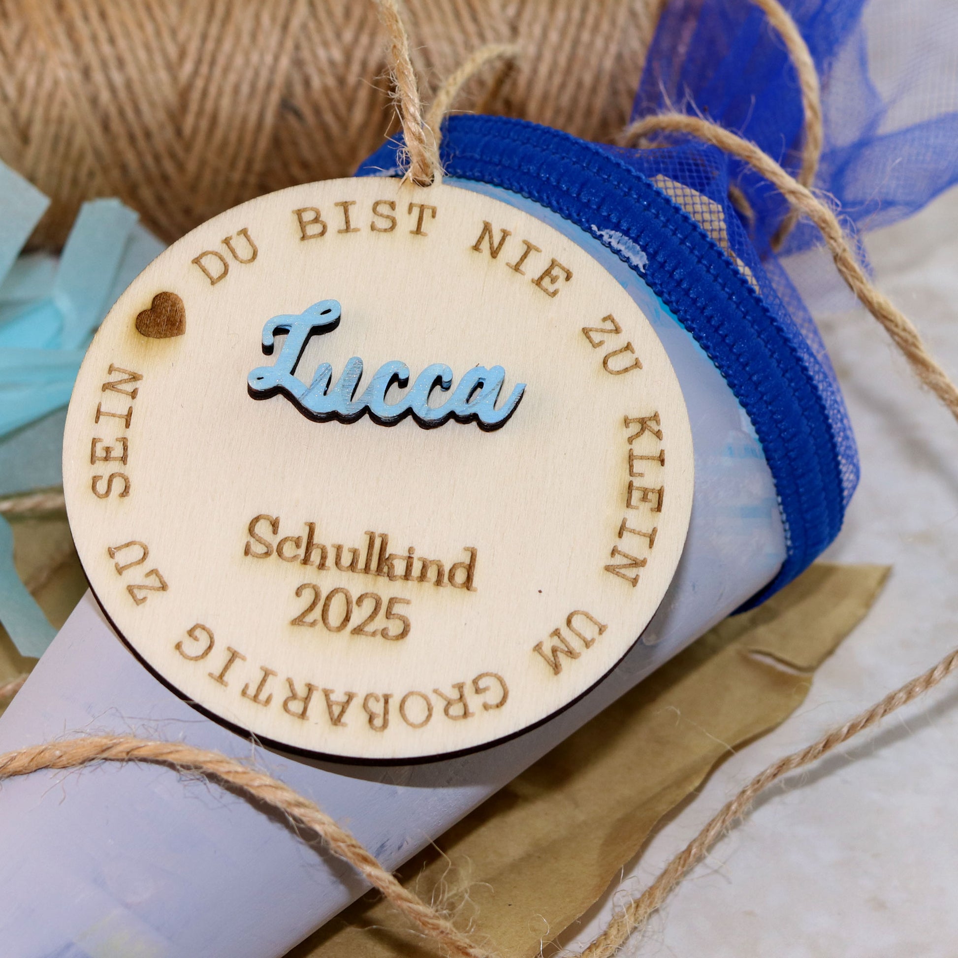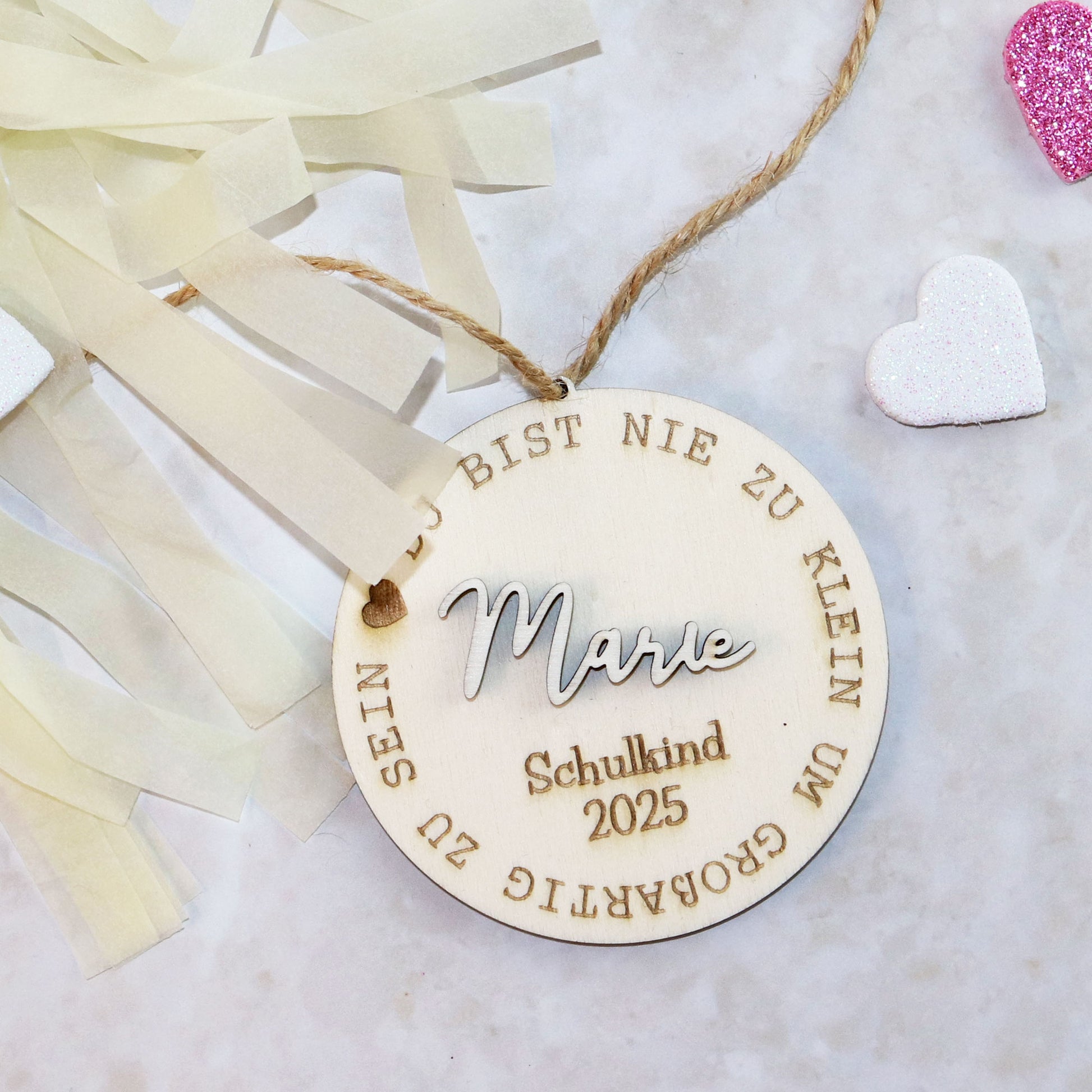 Unser runder Holzanhänger mit Name ist das perfekte Highlight für jede Schultüte oder als kleine Aufmerksamkeit für stolze Schulkinder!