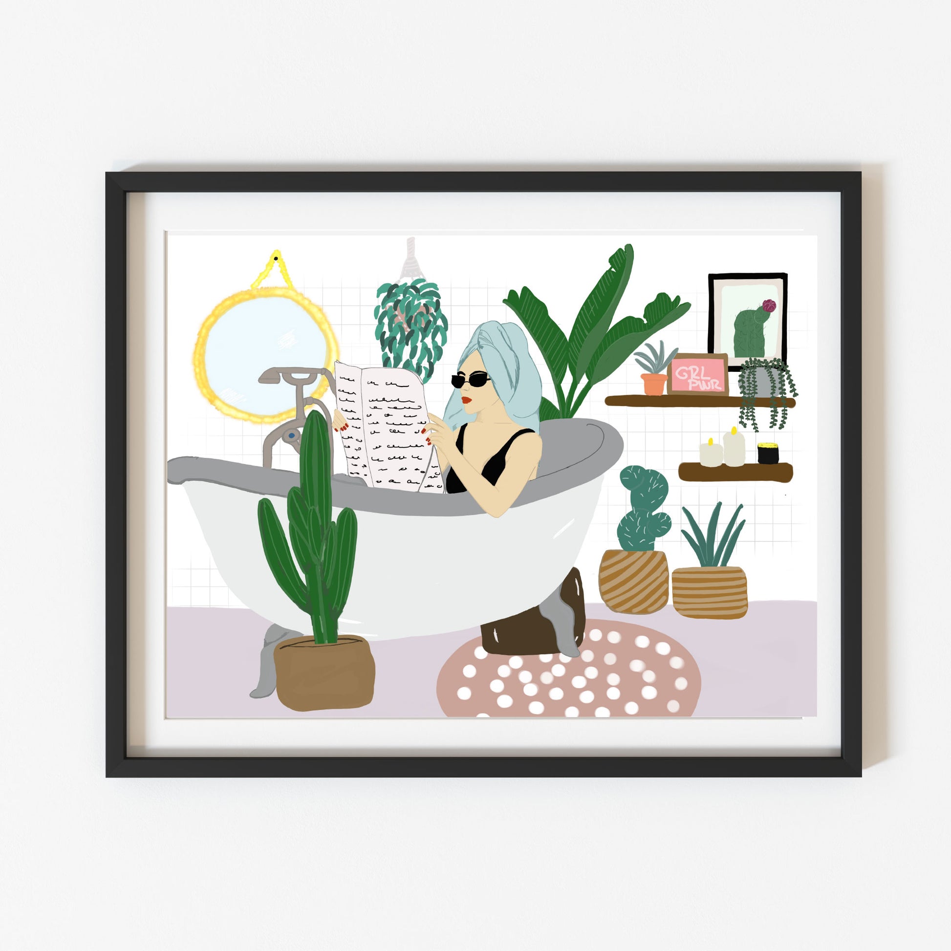 Print DIN A4: Entspannung & Stil – Moderne Frau in der Badewanne mit Pflanzen