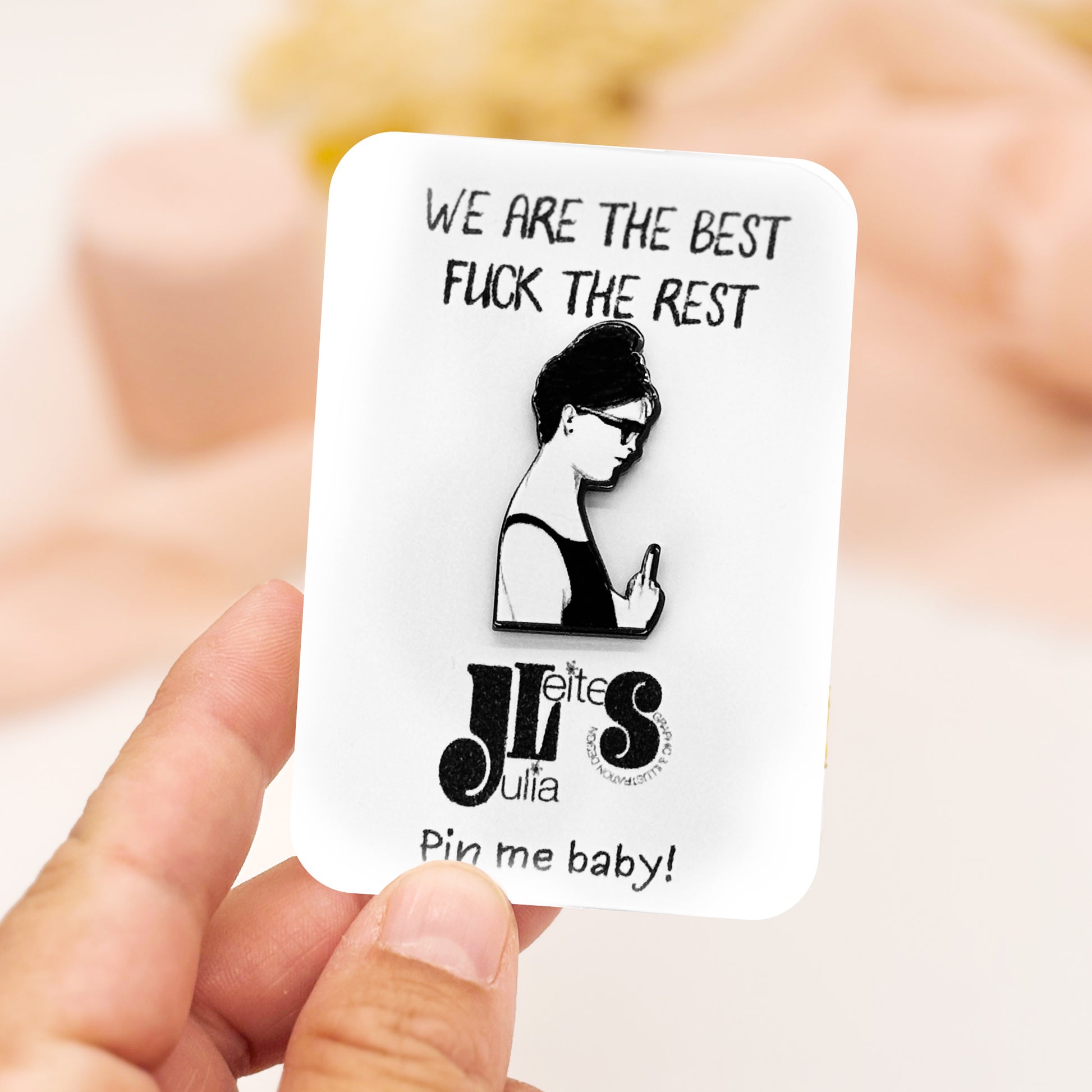 Mach deinen Stil unverwechselbar mit unserem Anstecker, der eine Frau zeigt, die selbstbewusst den Mittelfinger präsentiert. Dieses auffällige Accessoire ist nicht nur ein modisches Statement, sondern auch ein Ausdruck von Stärke und Individualität.