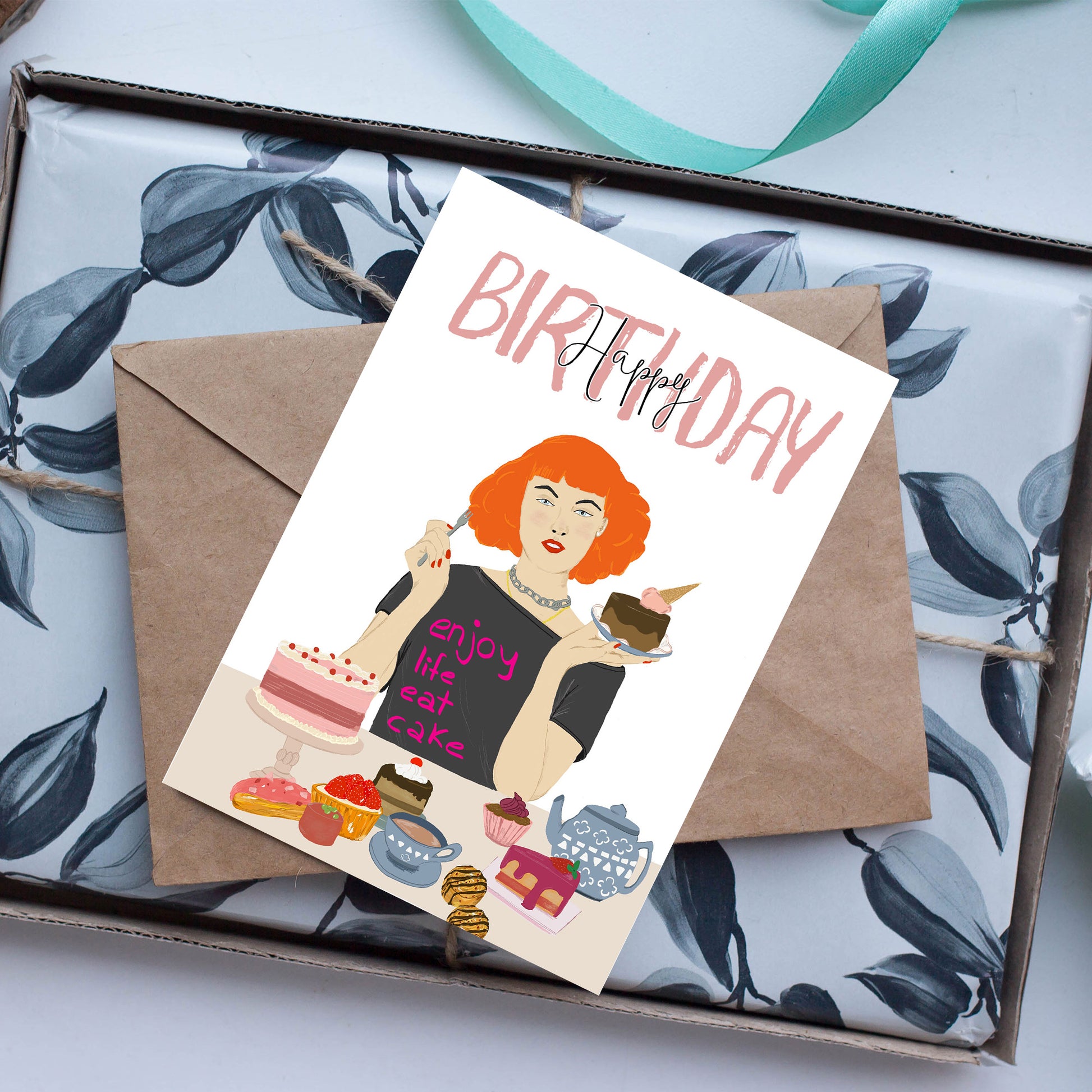 Die Geburtstagskarte für die beste Freundin, die Ehefrau oder Busenfreundin. Für Kuchenliebhaber und Genießer.