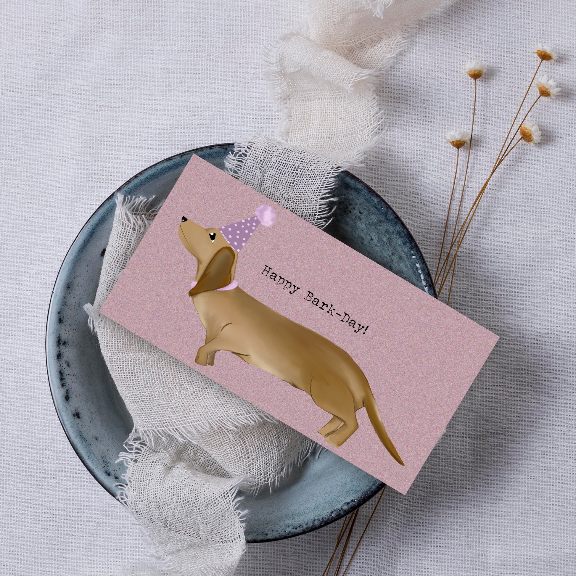 Grußkarte "Happy Bark Day" mit Dackel-Illustration – DIN Lang