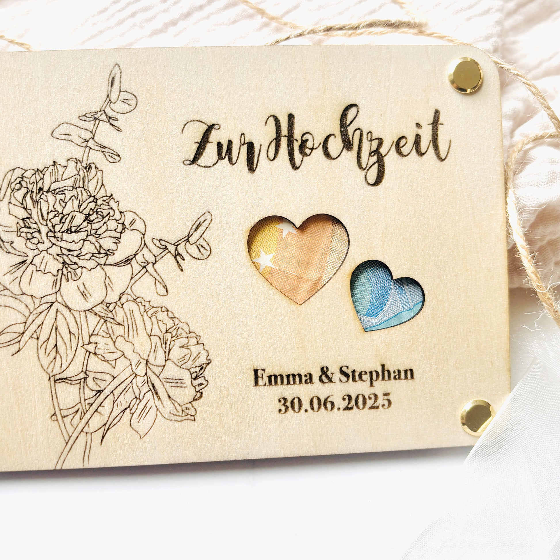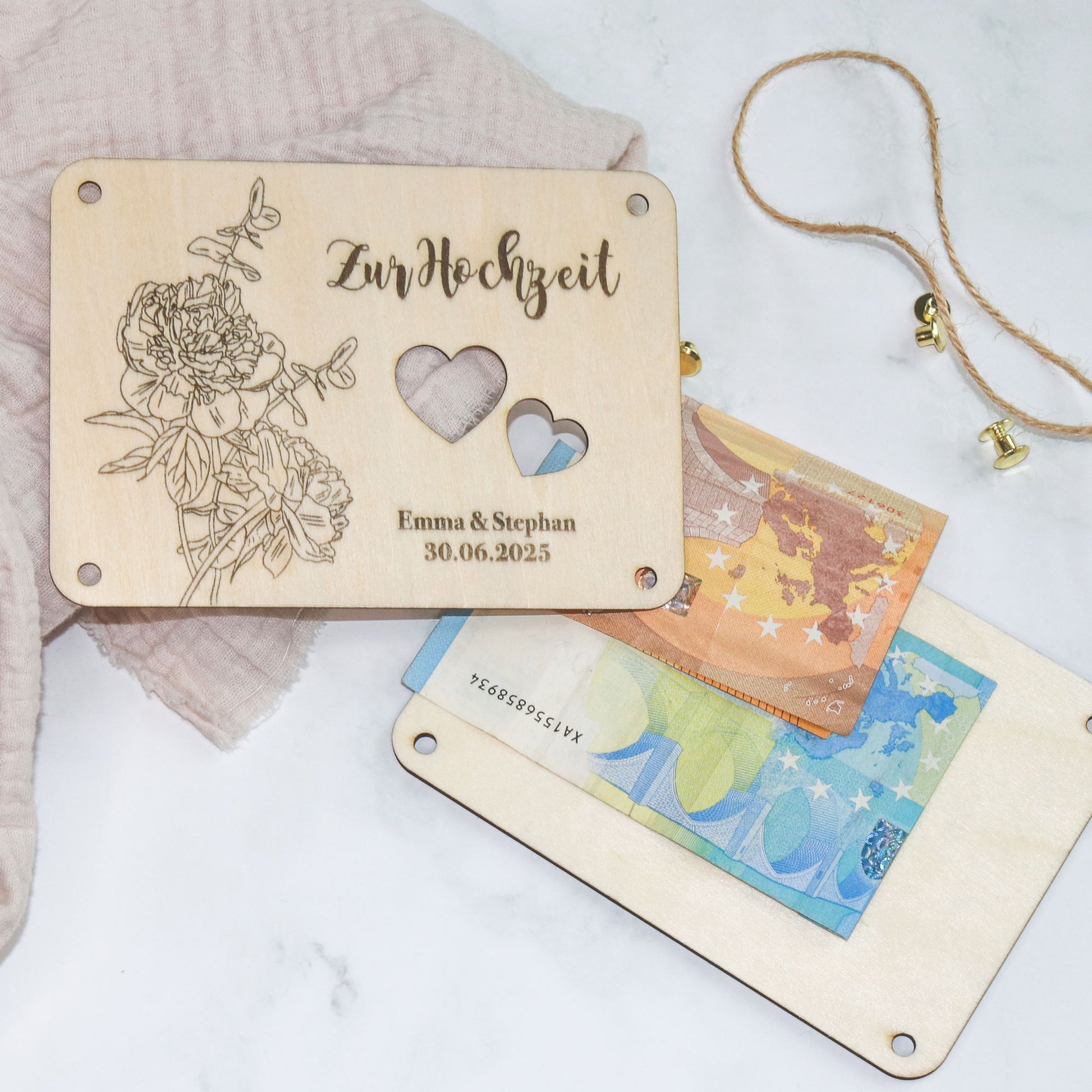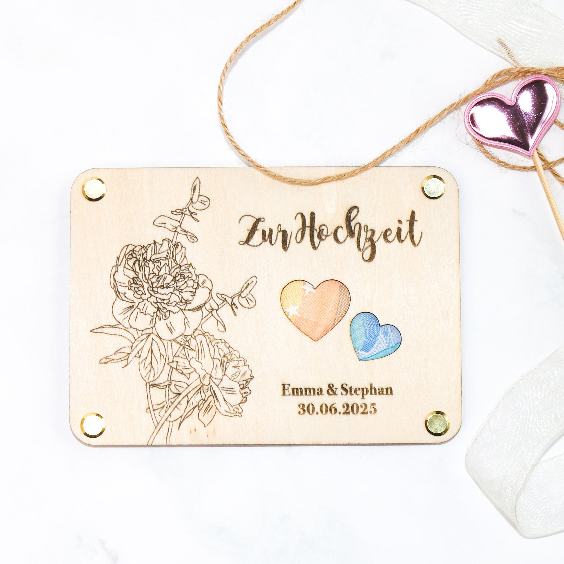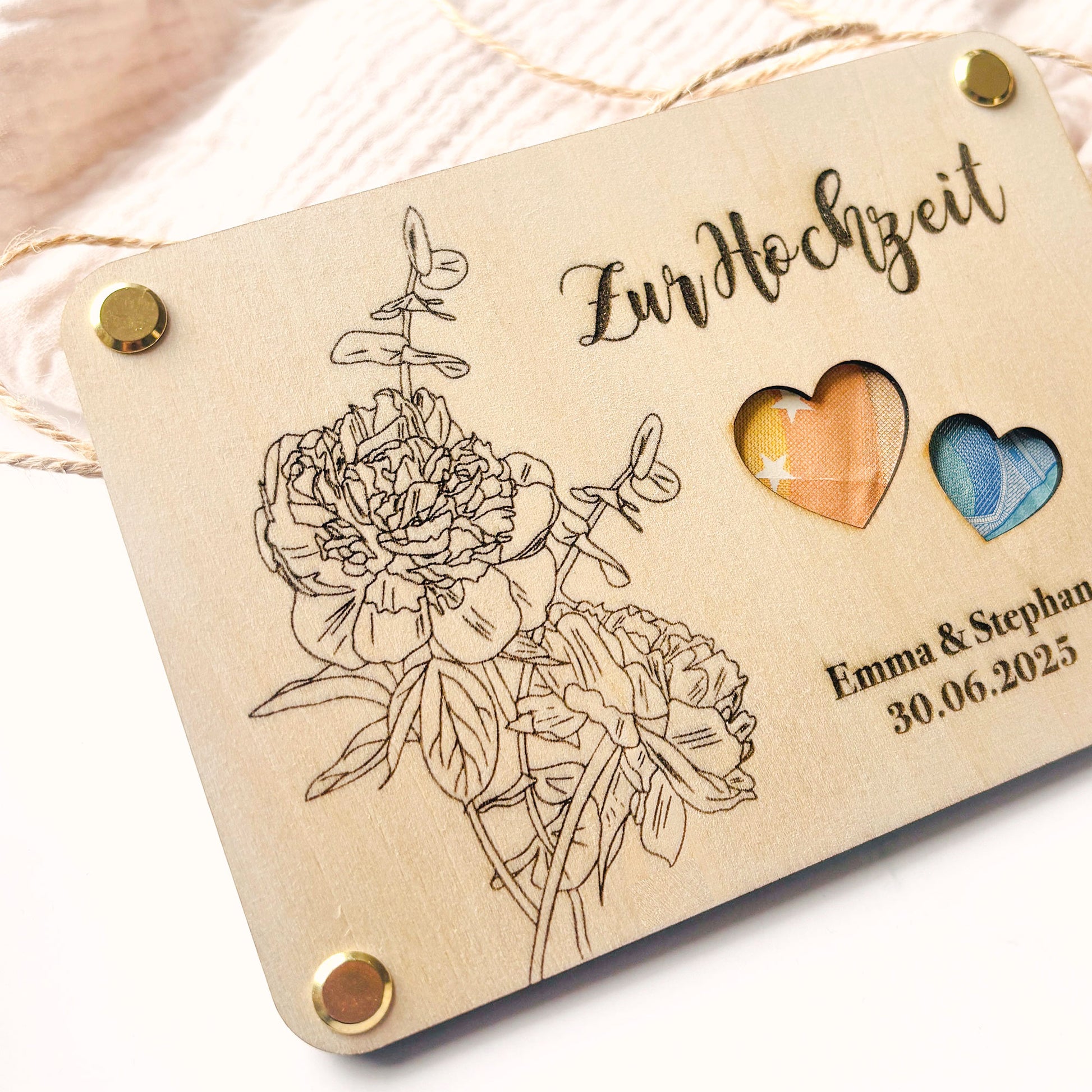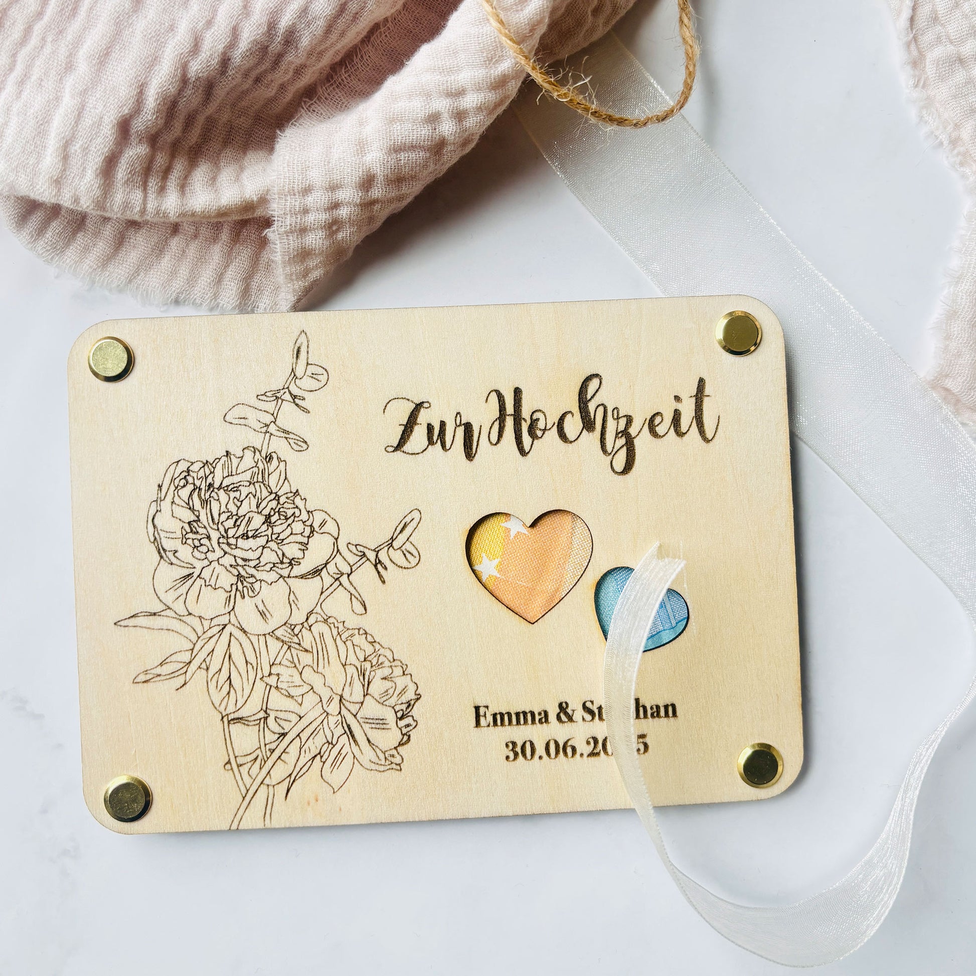 Geldgeschenk Hochzeit | personalisiertes Hochzeitsgeschenk Brautpaar | Geschenkverpackung Geld | Hochzeitskarte aus Holz | Geldgeschenk aus Holz | Hochzeitsgeschenk individuell | Holzkarte Hochzeit | Hochzeitsgeschenk personalisiert