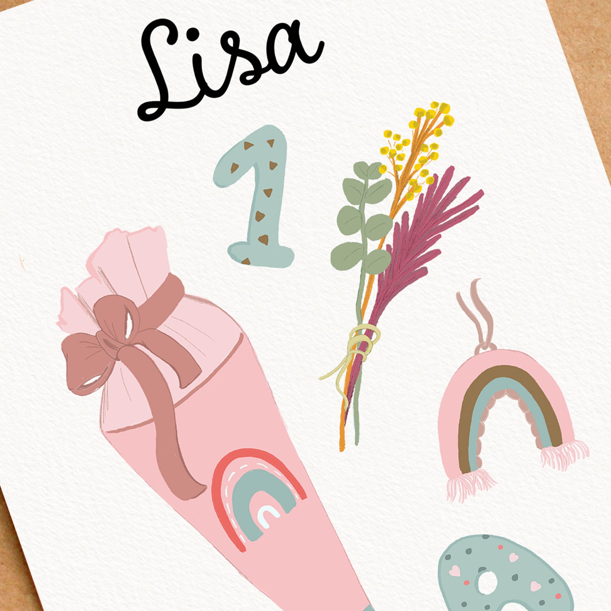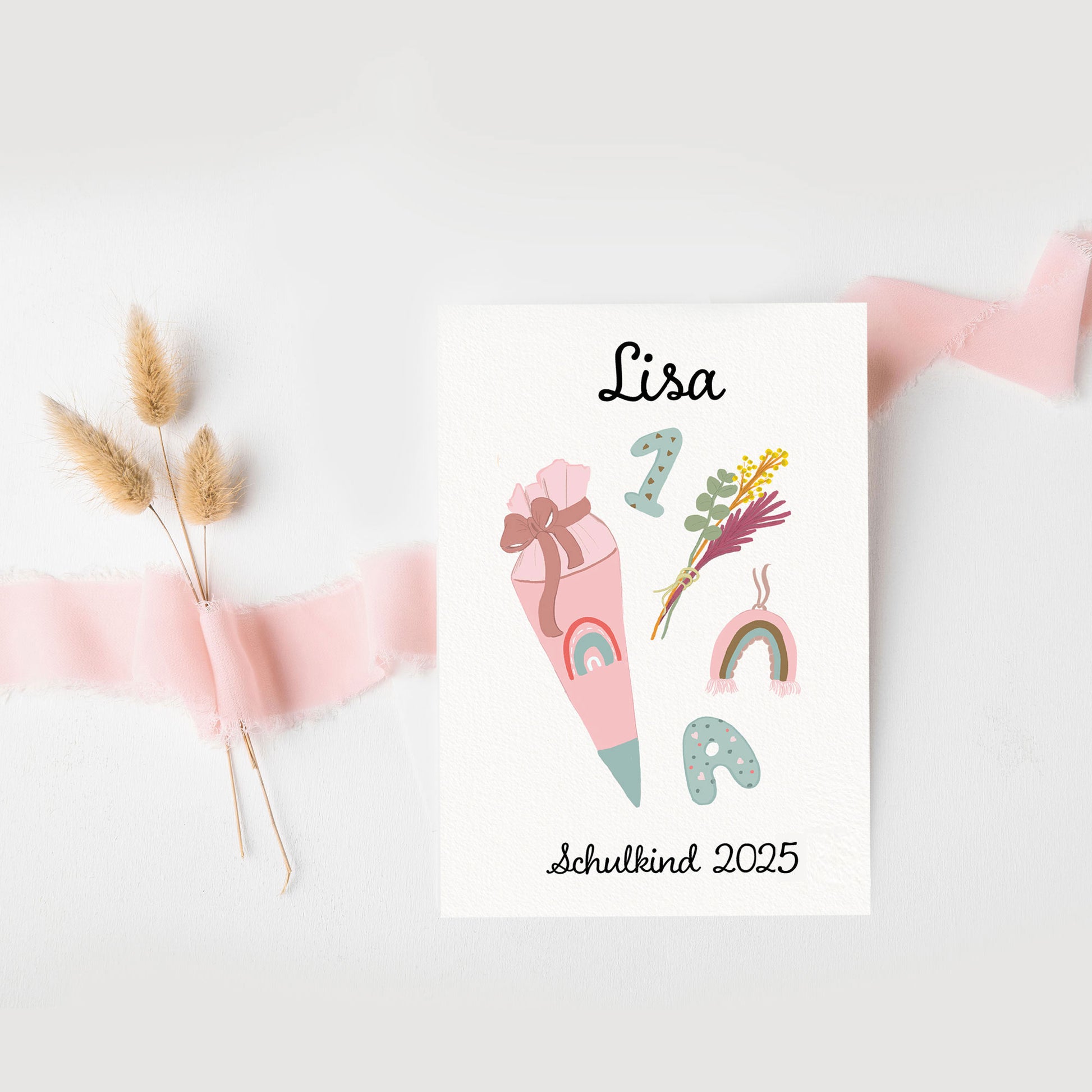 Überrasche kleine Schulstarter mit einer einzigartigen Einschulungskarte – personalisiert mit Namen und Einschulungsdatum! Unsere liebevoll illustrierte Karte ist ideal, um diesen besonderen Tag mit einem persönlichen Gruß zu feiern. Gedruckt auf hochwertigem Papier und mit Platz für deine eigenen Wünsche. Perfekt als Geschenkbeilage oder Postüberraschung für ABC-Schützen.