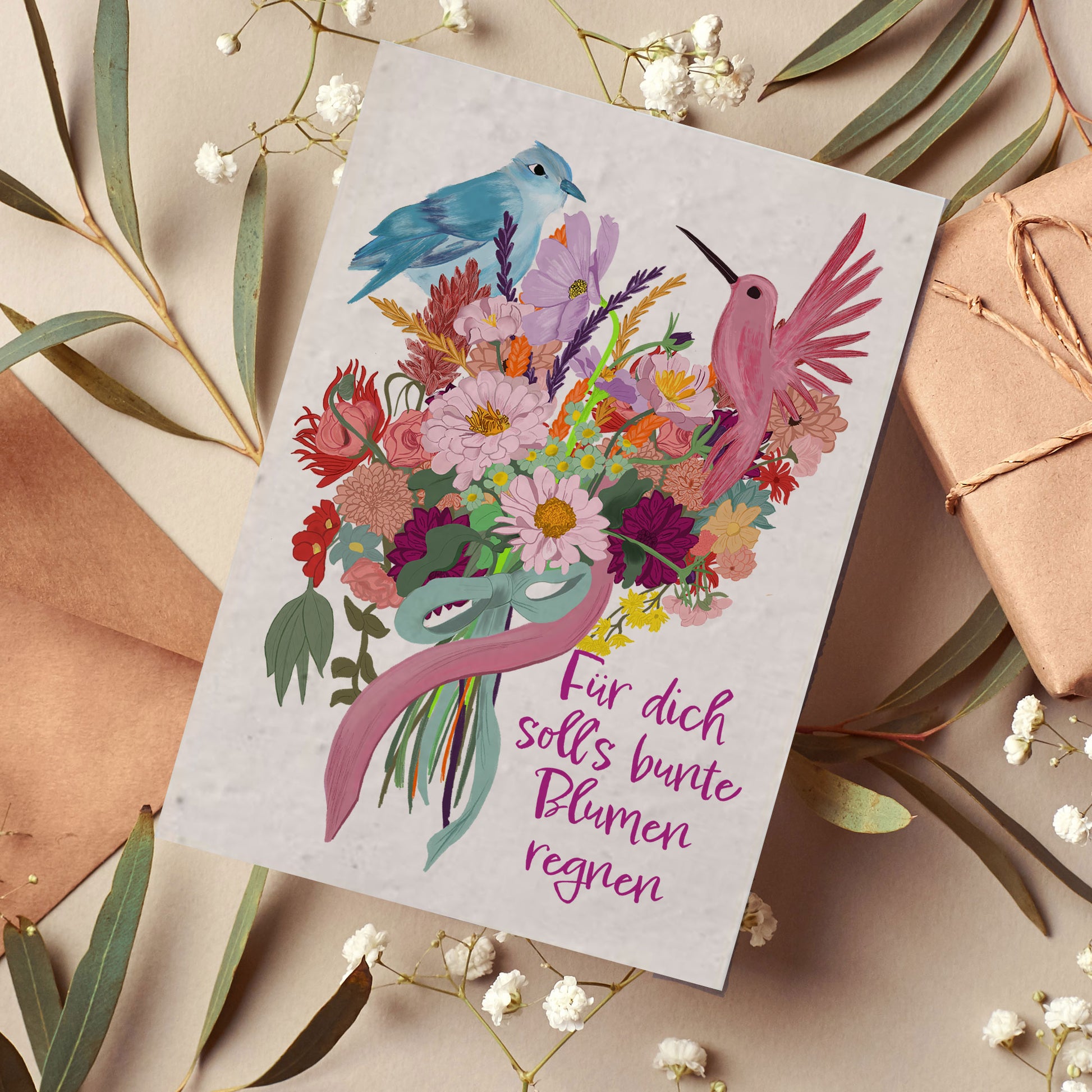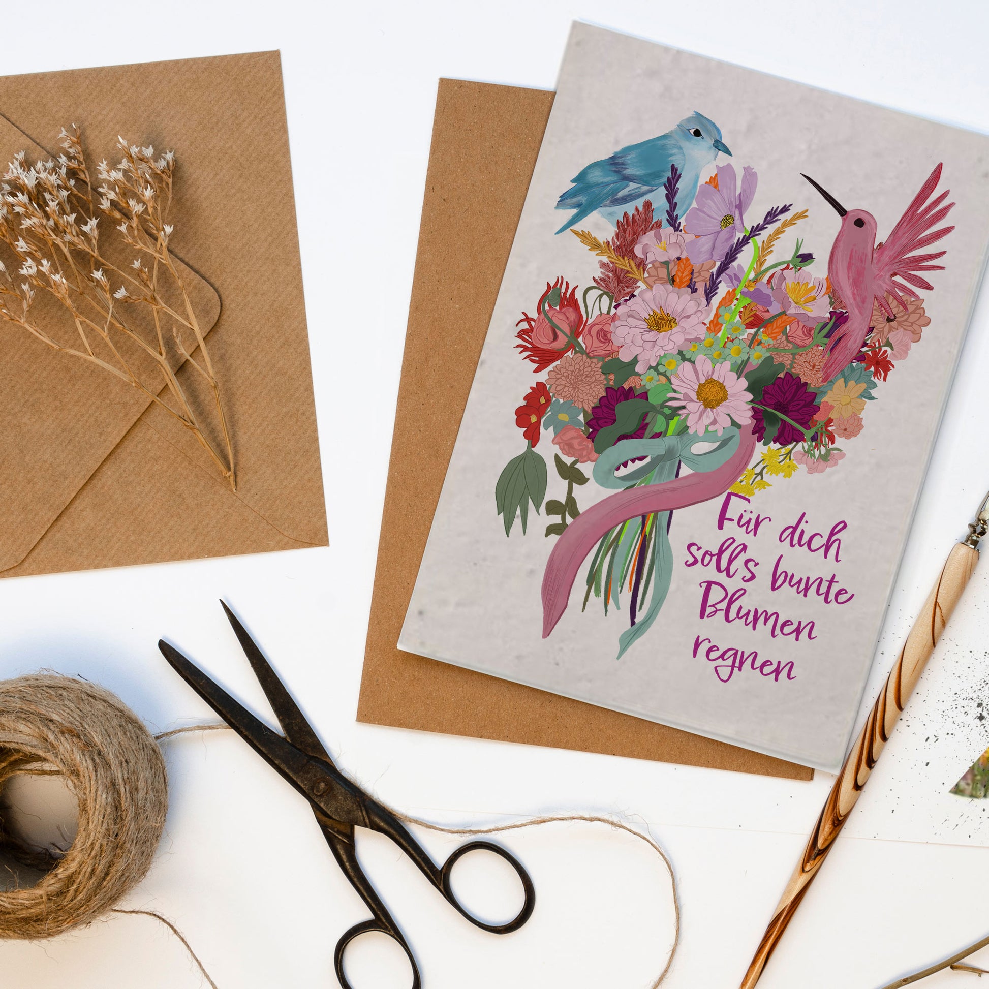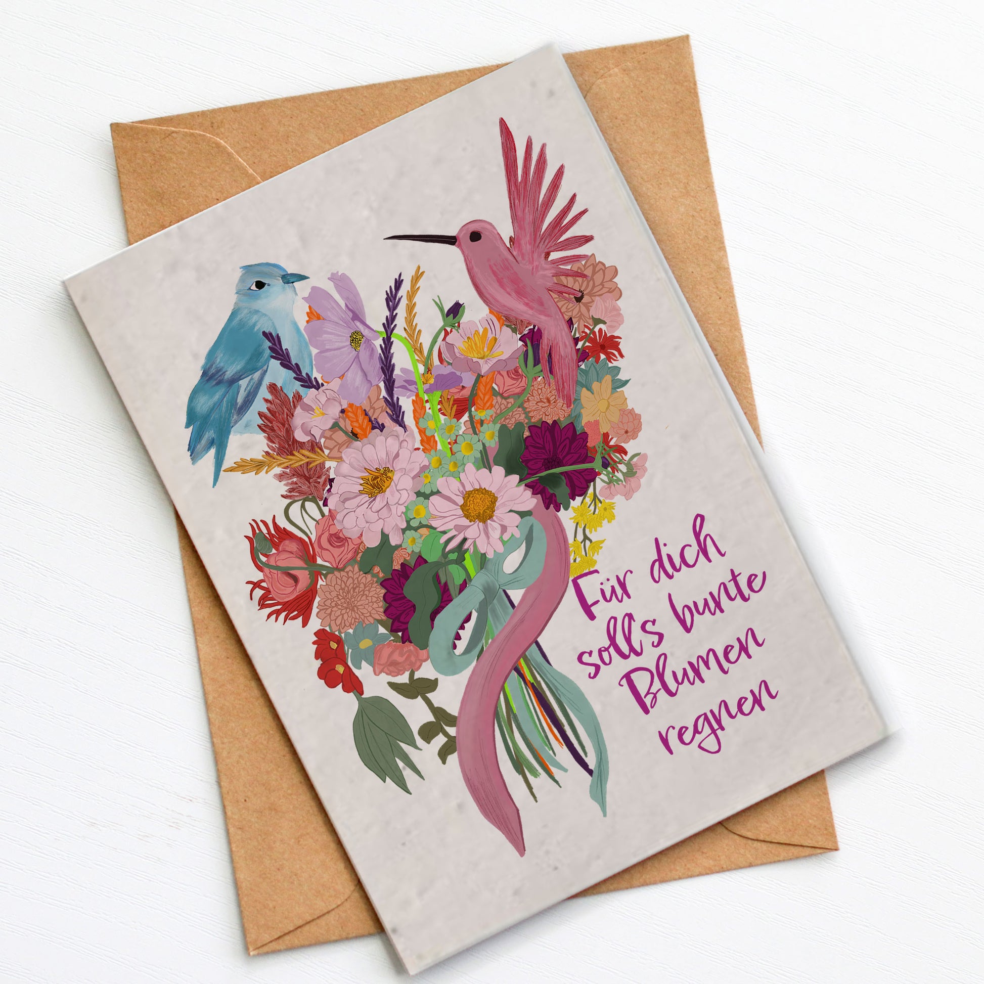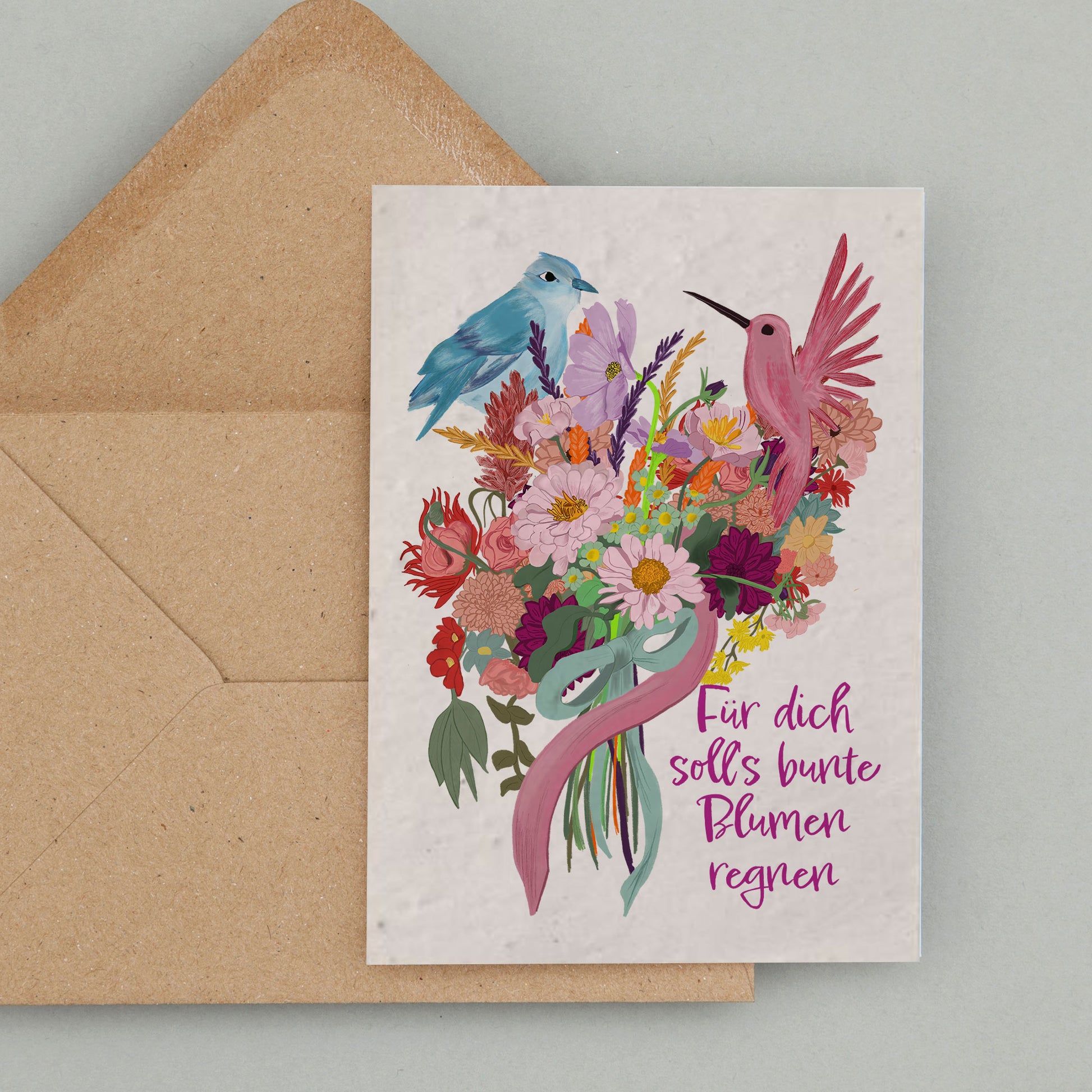Klappkarte mit Samenpapier – "Für dich soll's bunte Blumen regnen"