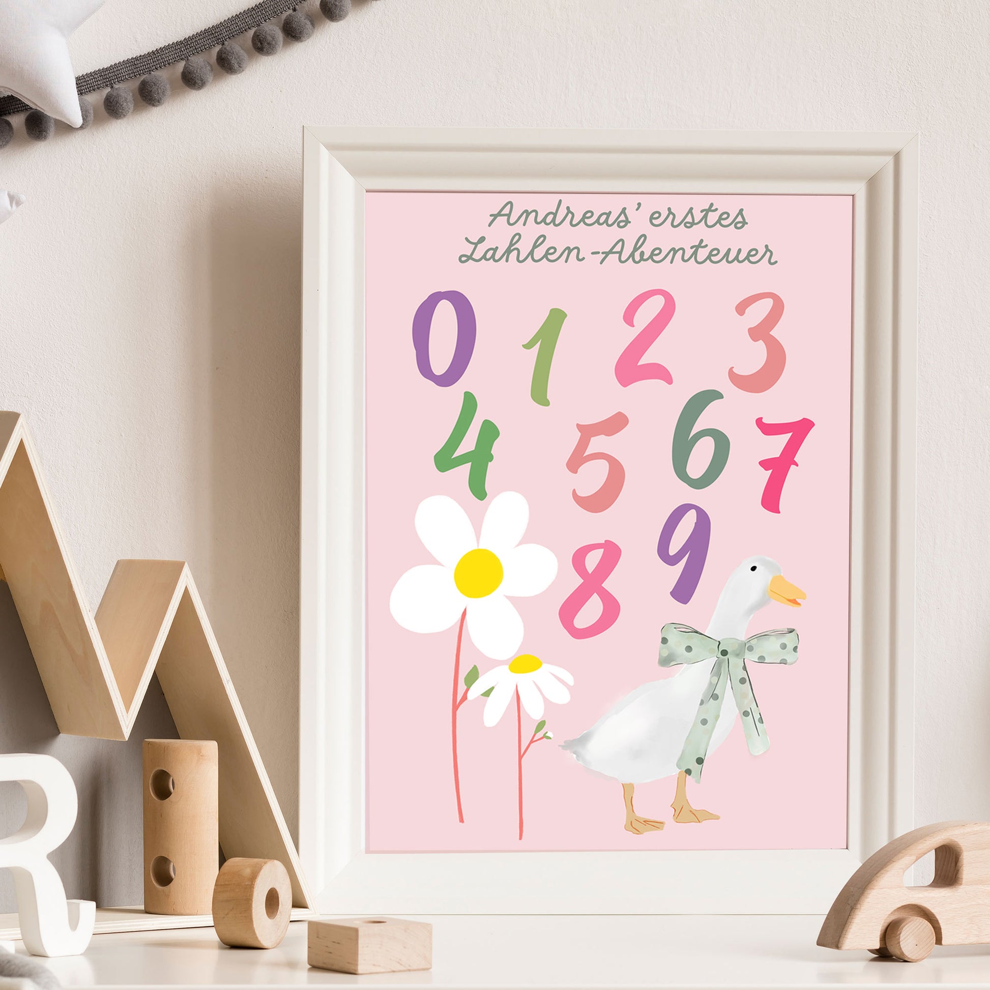 Personalisierbares Zahlenposter für Kinder – Lerne Zählen von 1 bis 9 mit Name, Lernposter, Buntes Kinderzimmer Deko Geschenk